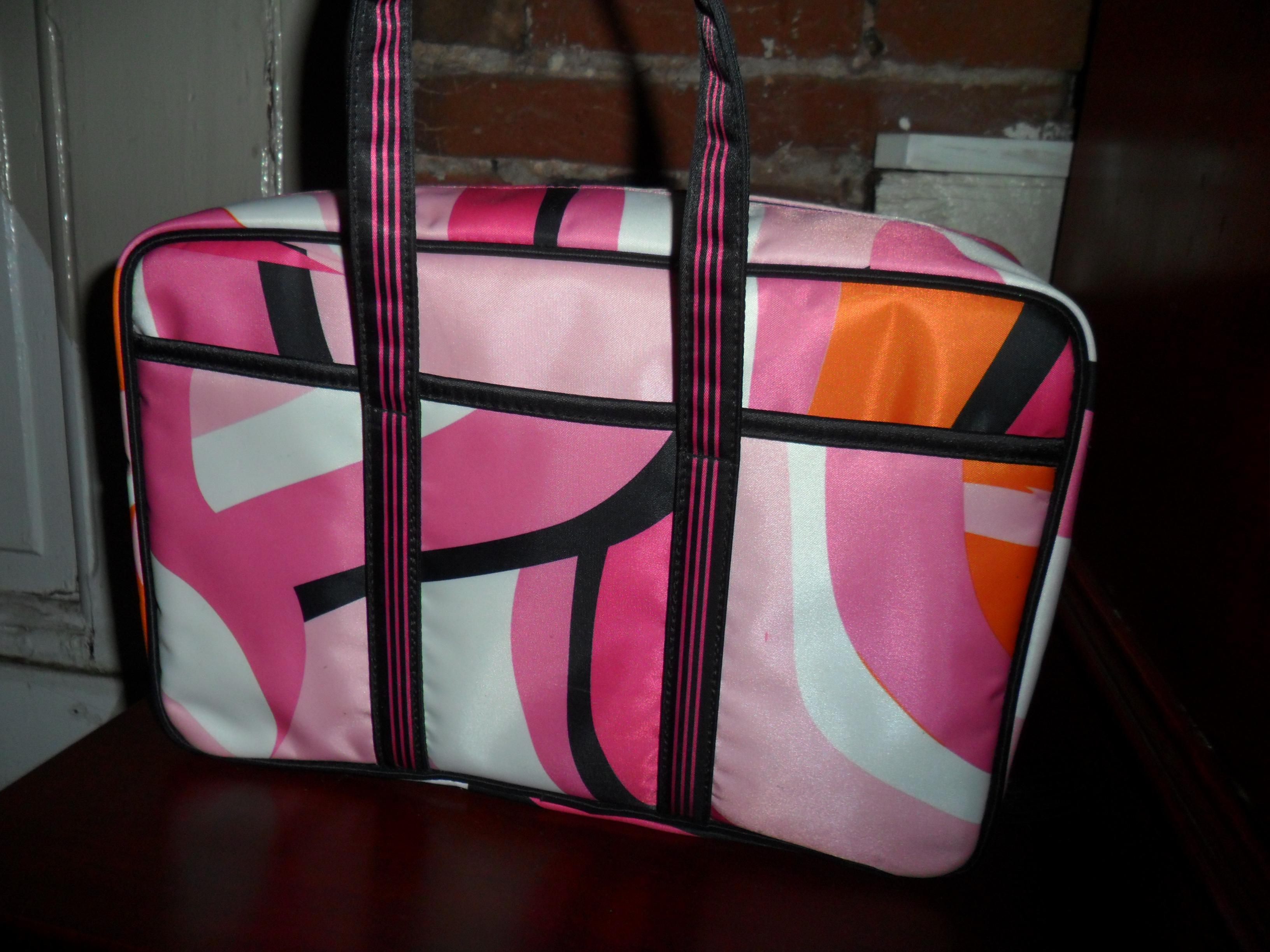 Ok, so you are now up to speed and we are ready to talk about packing your bathroom bag. I bought this from Target years ago and I really love it. It has enough room for everything you need, is easy to carry, and came with two matching cases, one for jewelry, the other for make-up. Once you zip it close, you can see it has a handle.