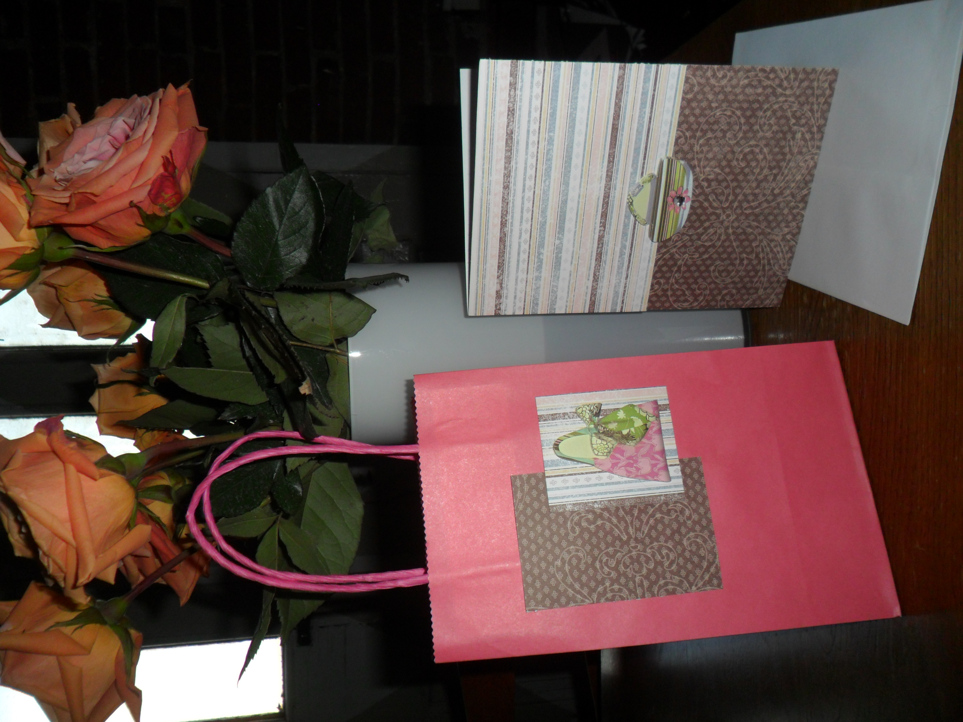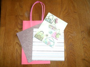 I follow Sarah on Pinterest and she always has amazing, fashionable outfits pinned. I kept this in mind when selecting a theme for the card and gift bag I was going to make her. After pouring through all my cardstock and stickers, here are the materials I choose to work with: