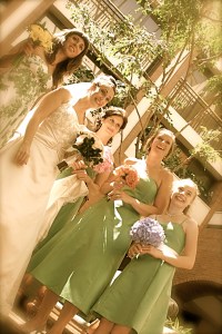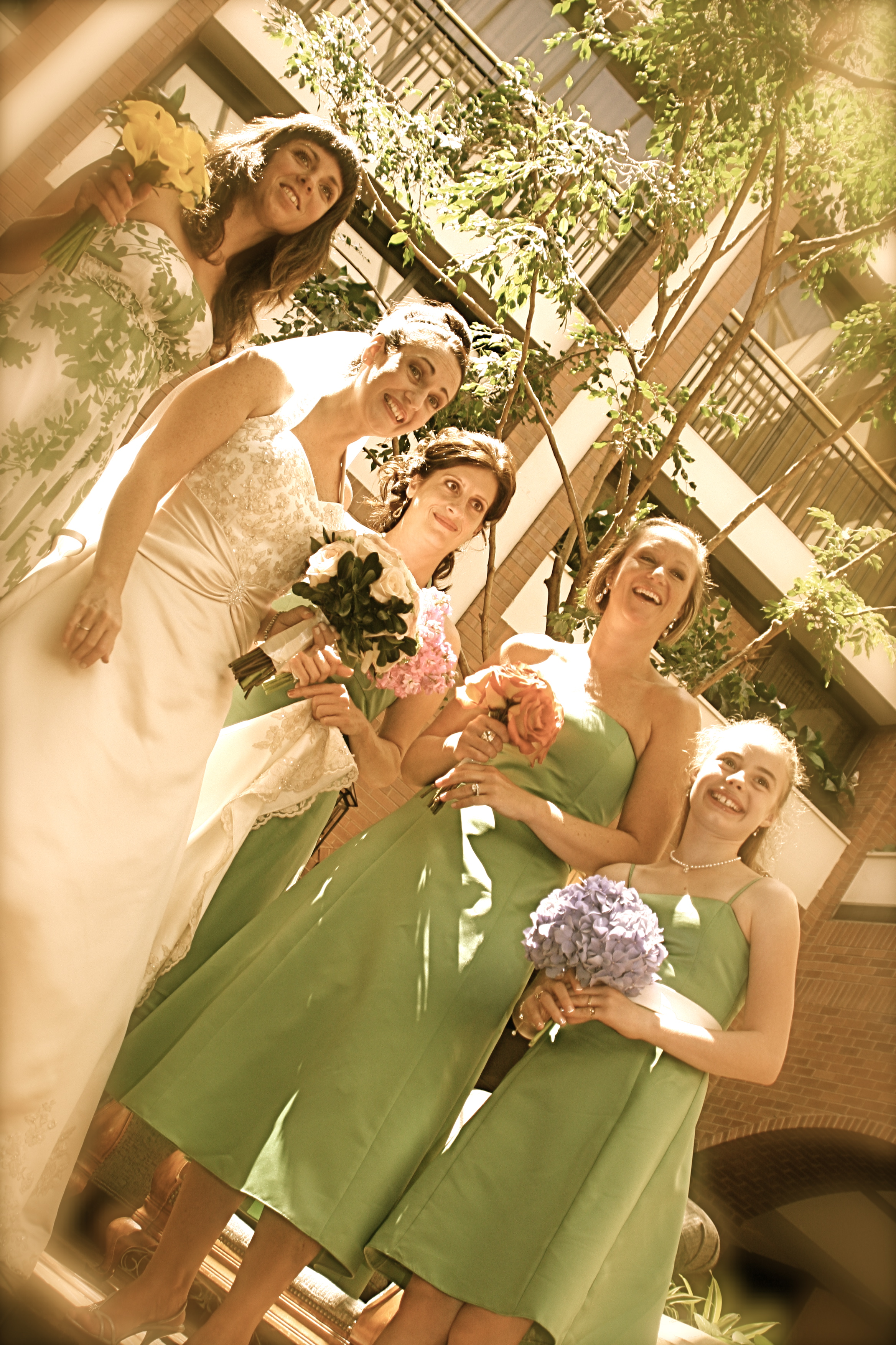 My bridesmaids wore green (of course!) They each wore a different style. I wanted them to be comfortable in a dress that they liked on themselves. It didn’t matter to me that they were not all the same. My maid of honor wore a print dress.