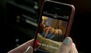 Finally the long awaited text from Jake came through the cell phone wave. Except it wasn’t exactly what Jenna wanted to read or see. It was a picture from the other night…Matty, Jenna, compromising position – and the words:” You are are a cheater.”