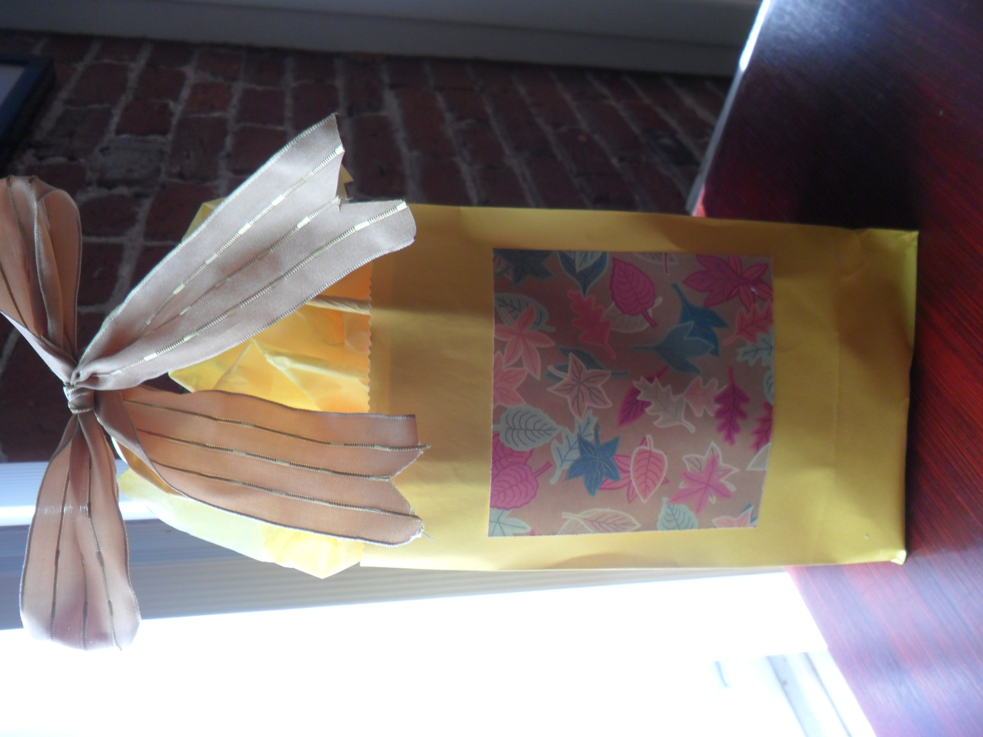 With some autumnal paper and a gold ribbon, this sunshine yellow bag and tissue paper is now set for a fall candle gift!