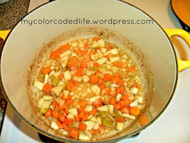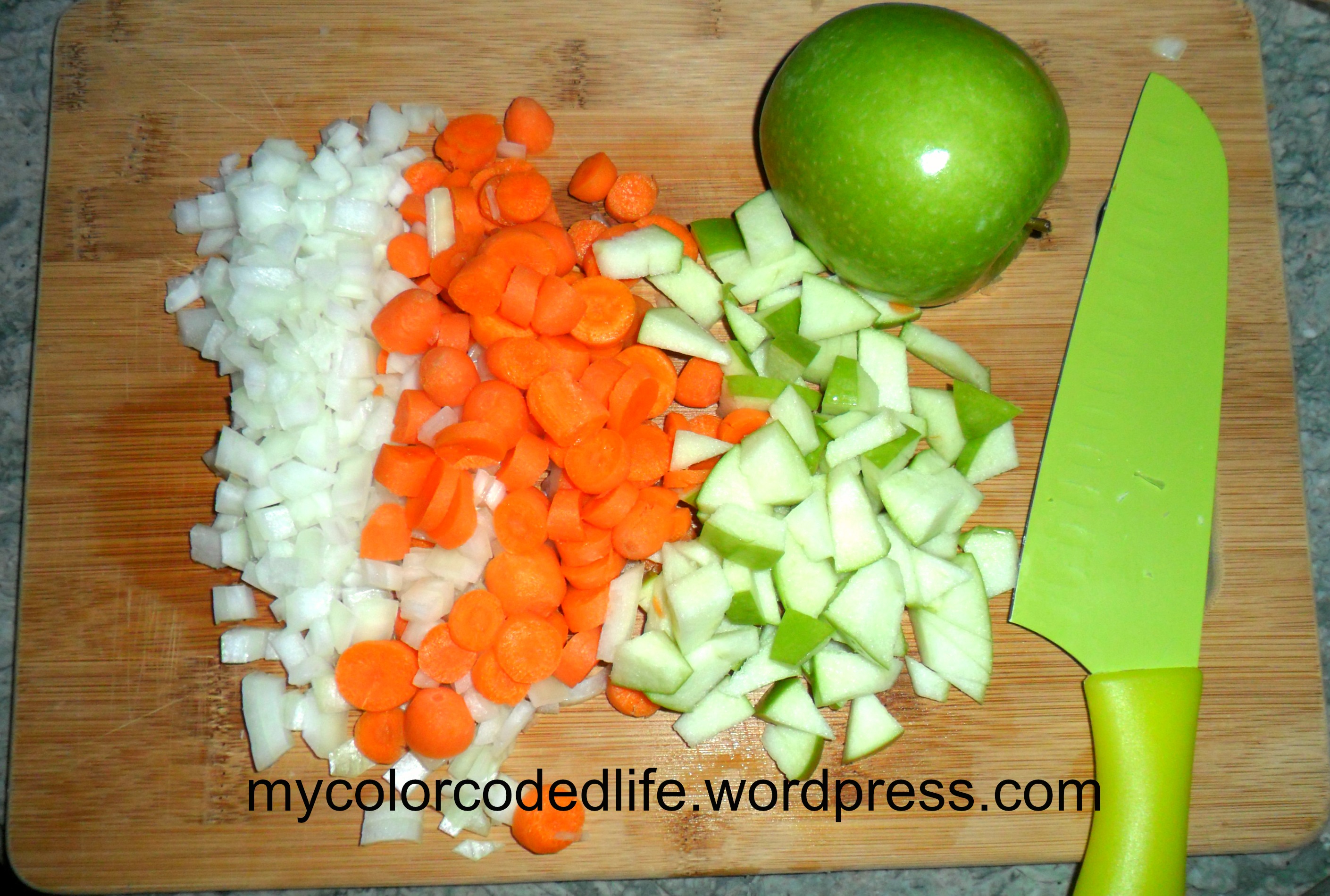 My Color Coded Life tip for the night before: chop the vegetables and apple and put the squash in the refrigerator to thaw.