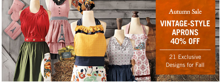 - Sur la table – Vintage Style Aprons – colorful and cute – look like you are on the set on Mad Men at your next dinner party!