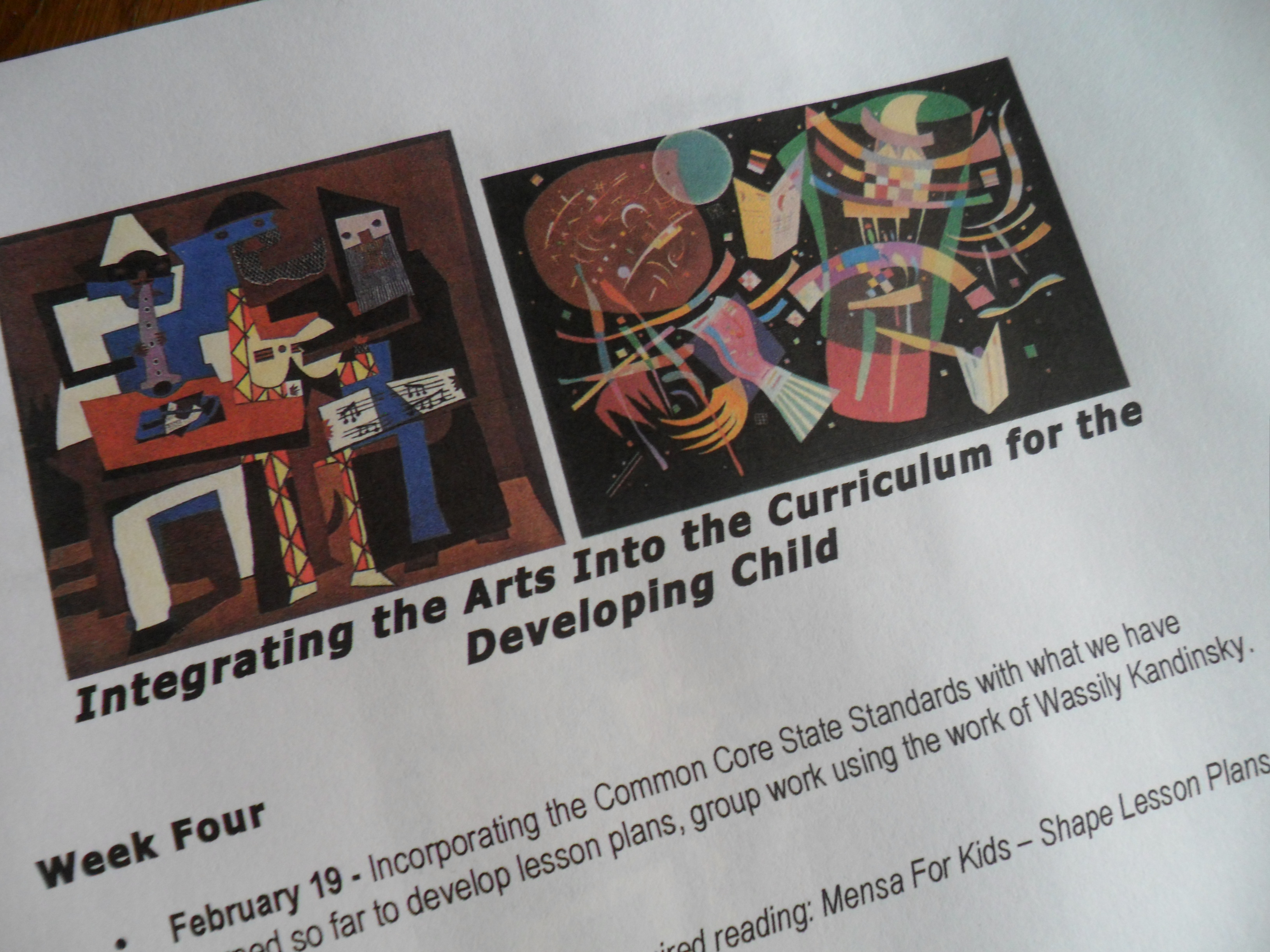This semester I am teaching my first college course.  I was a classroom teacher for years, for all different age groups, before switching to the non-profit arts sector eight years ago.  I have really enjoyed being back in the classroom, especially at the college level. The course is an elective for Elementary Education majors that concentrates on integrating the Arts across the Curriculum.