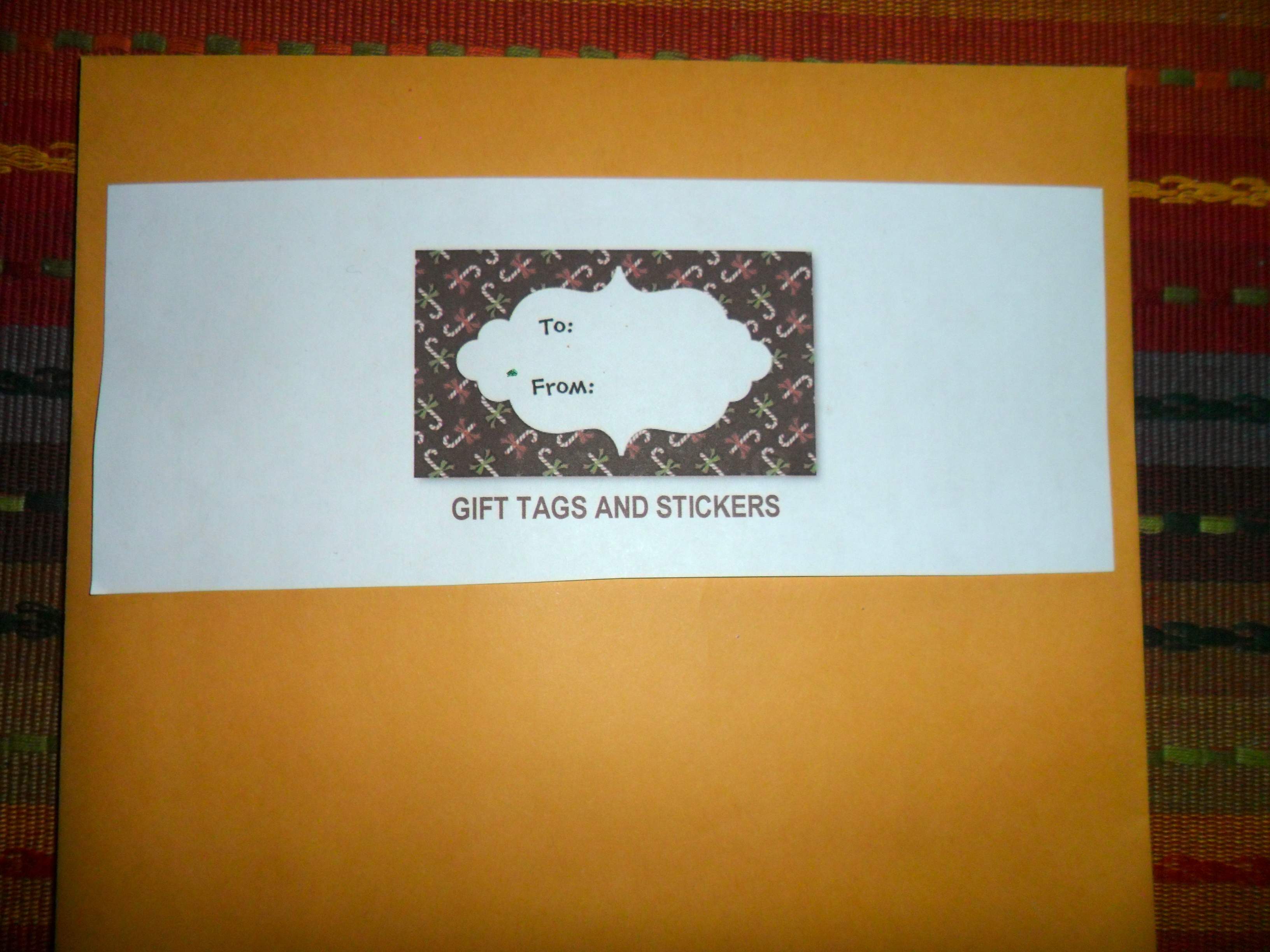 Gift Tags and Stickers A manilla envelope houses on of my gift tags, christmas stickers, and holiday craft paper (which I use to make gift tags or dinner place cards)